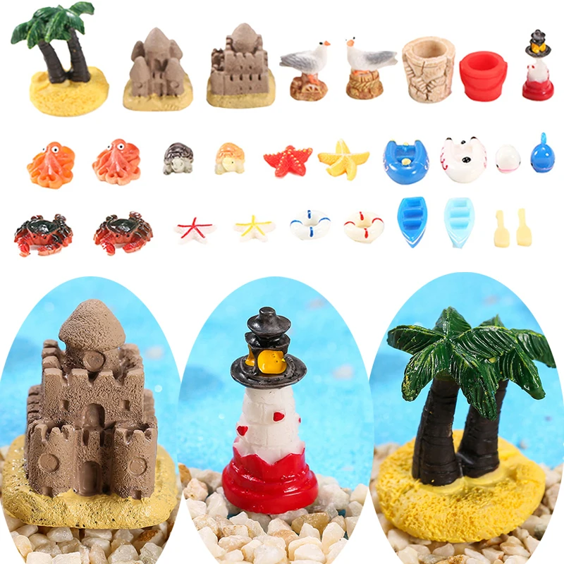 14 Style Small Ornaments Ocean Beach Style Aquarium Decor Resin Miniatures Artificial Aquarium Fish Tank Decoration DIY Craft
