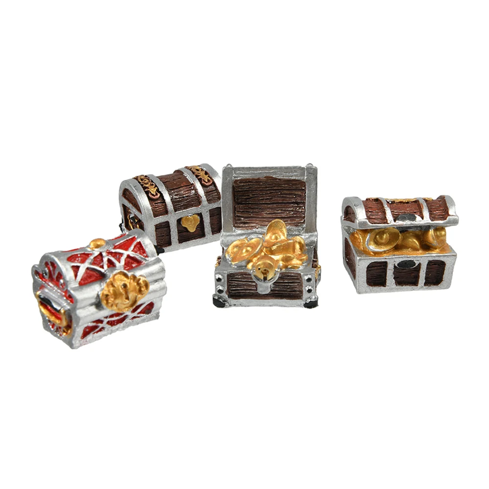 Treasure Chest Box Antique Creative Fish Tank Aquarium Decoration Landscape Pirate Gold Coins Ornaments Resin Decoration